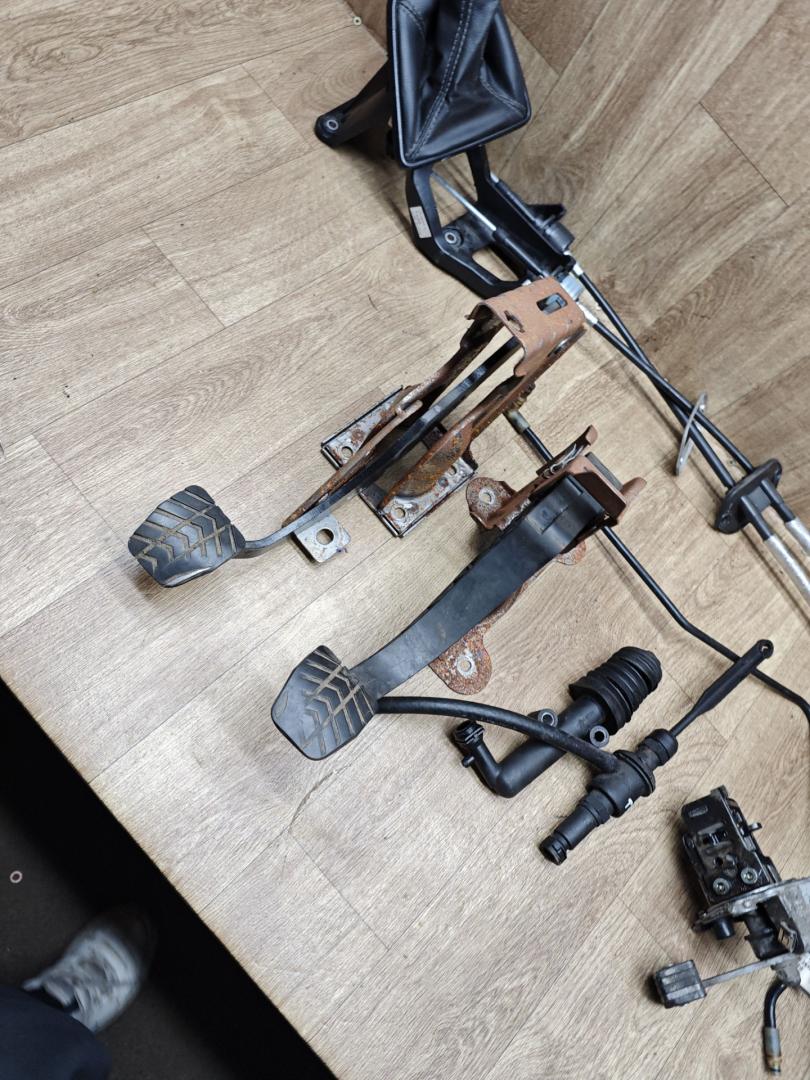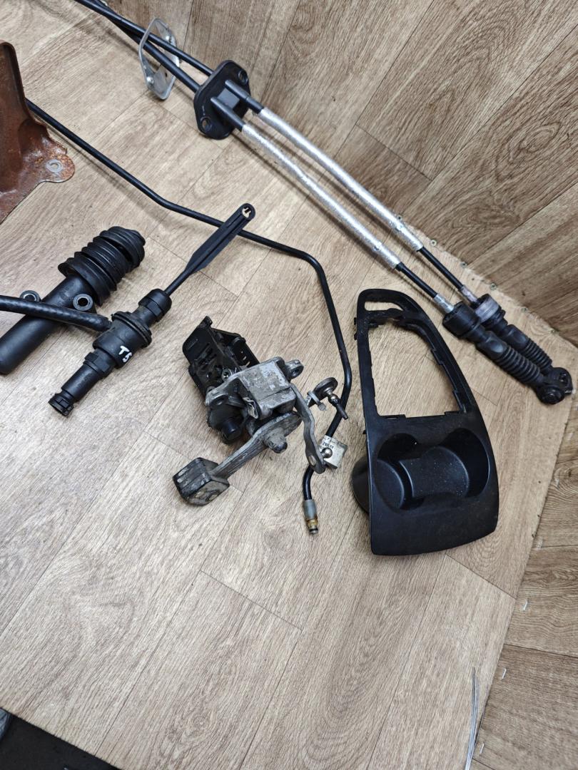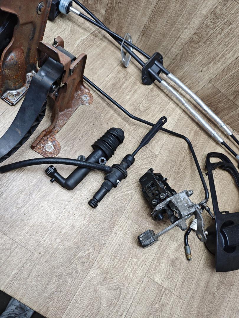 Комплект под переделку . Педаль тормоза и сцепления с кронштейнами. Главный и рабочий цилиндр сцепления. Трубка сцепления. Механизм выбора передач, кулиса с тросами кпп. Рамка кулисы. Есть незначительные нюансы.